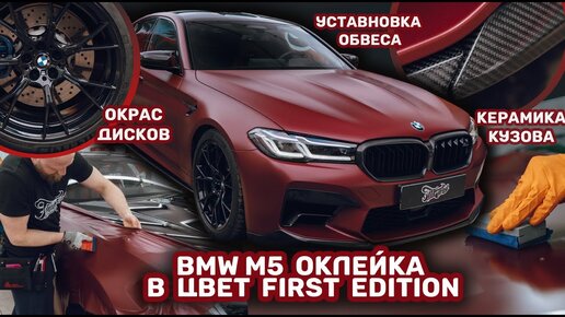 BMW M5. Оклейка винилом цвета First Edition, окрас дисков, керамика кузова и установка обвеса