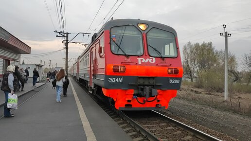Электропоезд ЭД4М-0280 прибывает к о.п. Совхоз Бердский