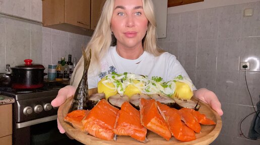 МУКбАНГ/ФОРЕЛЬ И СКУМБРИЯ С ОГУРЧИКАМИ И КАРТОШЕЧКОЙ!