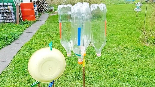 Ветряк стукалка из пластиковых бутылок для отпугивания птиц и кротов самоделка своими руками