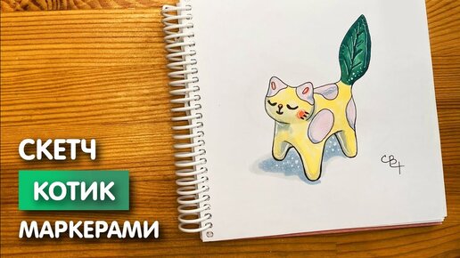 Рисунок скетч маркерами "Котик" для скетчбука | Срисовка картинки для начинающих