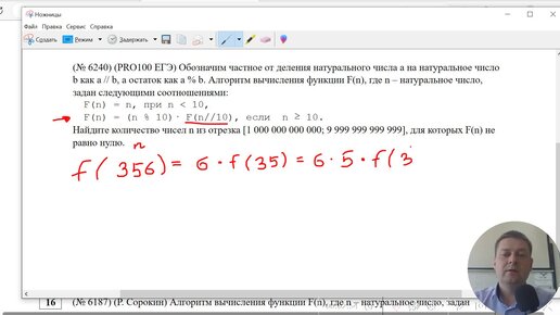 ЕГЭ, №16 про рекурсию, инф. № 6240 с сайта К.Ю. Полякова. Эта задача показалась интересной и показательной: не всегда надо программировать