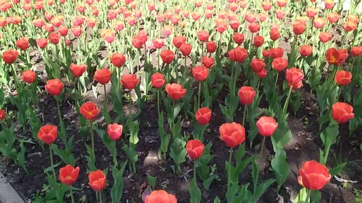 Море разноцветных тюльпанов в парках Тамбова к 9 мая