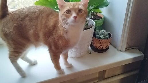 Гуляю по окошку, среди цветов я самый красивый 😸