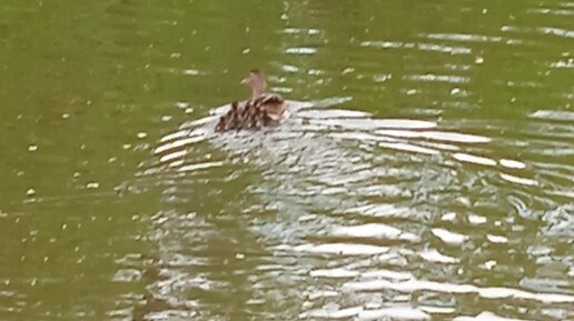 Крошечные малыши плывут за мамой уткой
