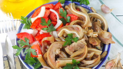 Вы не заметите, как съедите целую тарелку такого деликатеса! Свиные уши, жаренные с чесноком.