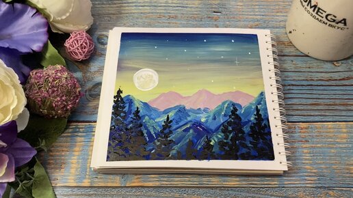 Очень простой пейзаж акрилом или гуашью. Рисование для начинающих. Рисуем вместе