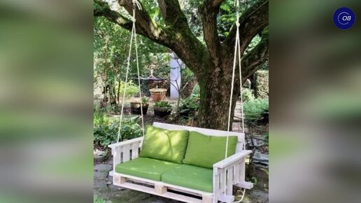 Посмотрите какие отличные садовые качели можно сделать из поддонов