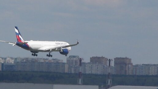 Красавчик Аэрофлота Аэробус А-350 приземляется в аэропорту Шереметьево г. Москва.