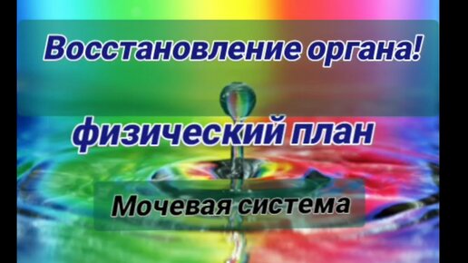 Восстановление органа, физический план. Мочевая система.