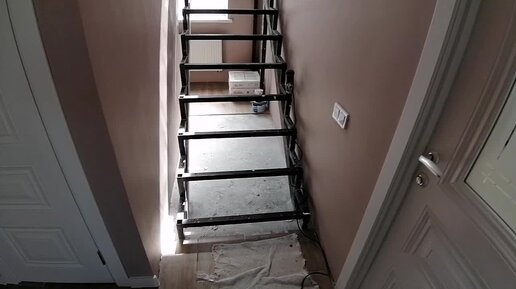 Лестница на металлокаркасе, обшил металлокаркас лестницы.