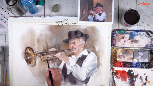 Как нарисовать трубу акварелью. Рисуем музыканта!