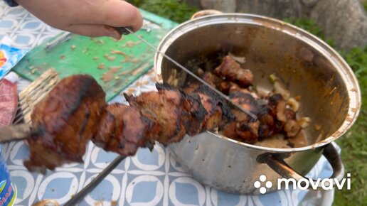 Жарим шашлыки на даче у озера