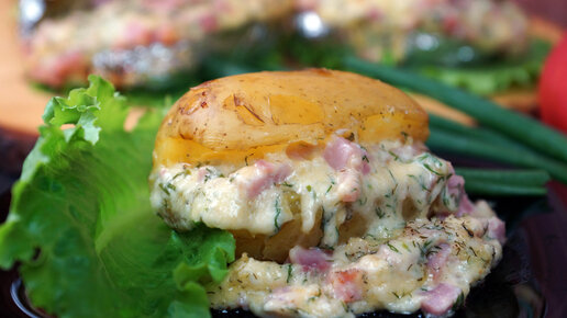 Ароматный и вкуснейший картофель запечённый в фольге с сырно-ветчинной начинкой