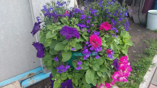 Формирую петунию с лобелией в самодельный горшок с отверстиями.