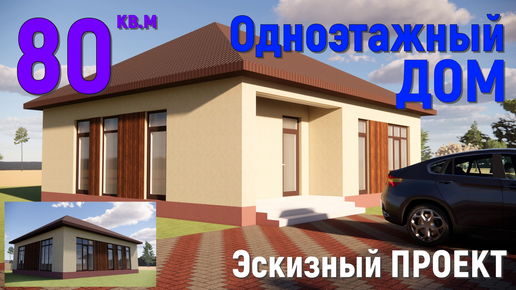 НЕБОЛЬШОЙ ОДНОЭТАЖНЫЙ ДОМ 80 кв. ДВЕ СПАЛЬНИ. 10х11 м. 3D ПРОЕКТ