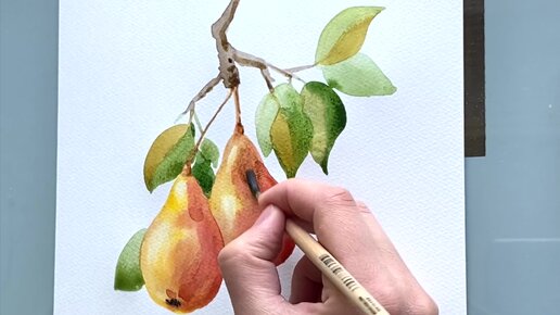 Как нарисовать груши на ветке. Акварель для начинающих