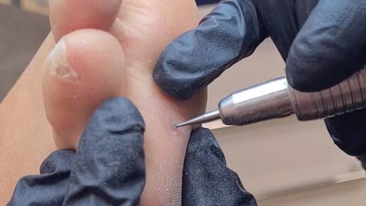 Момент удаления стержневой мозоли, клиент не чувствует боли и какого либо дискомфорта.