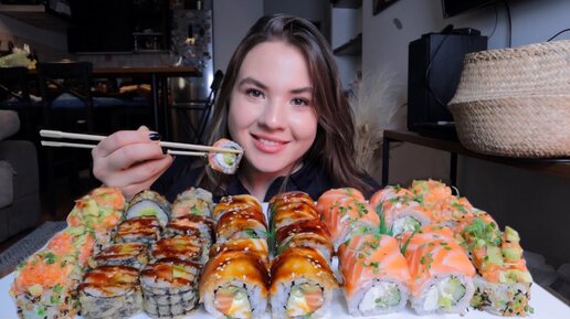 МУКБАНГ тест новой доставки Опыт онлайн-обучения СТОИТ ЛИ? Роллы угорь лосось 🍣 mukbang sushi
