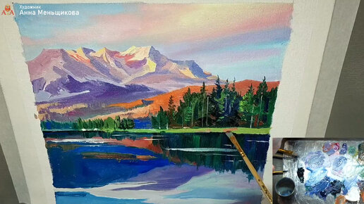 Рисование пейзажа "Рассвет в горах" за 2 минуты