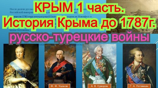 История Крыма до 1787г. Краткий исторический очерк. русско-турецкие войны. Лекции читает Лысов А.В.