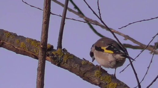 ЩЕГОЛ проверяет клюв и точит) о ветки старой ивы