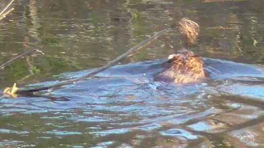 Ондатра путешествует по речке против течения. Двигатель - хвост