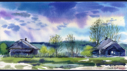 ☁️ Синее небо в весеннею погоду, акварель / озвучка