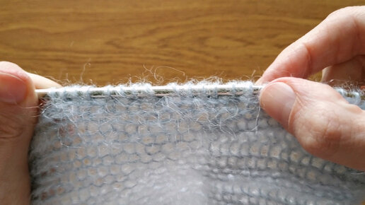 Набор петель по кромочным в ритме 2 петли на 3 ряда и 4 петли на 5 рядов