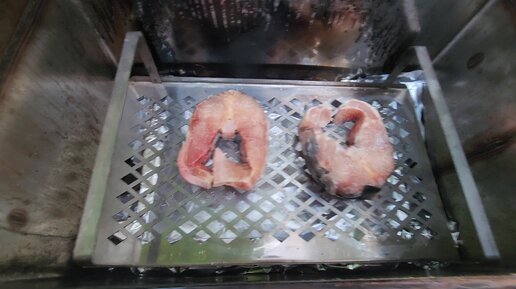 СТЕЙКИ ИЗ ОСЕТРИНЫ ЗАМОРОЖЕНЫЕ ГОРЯЧИМ КОПЧЕНИЕМ. ПРИГОТОВИЛИ НА СКОРУЮ РУКУ И ВЫШЛО СУПЕР.
