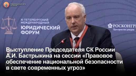 Выступление А.И. Бастрыкина на сессии «Правовое обеспечение национальной безопасности в свете современных угроз» в рамках ПМЮФ-2023