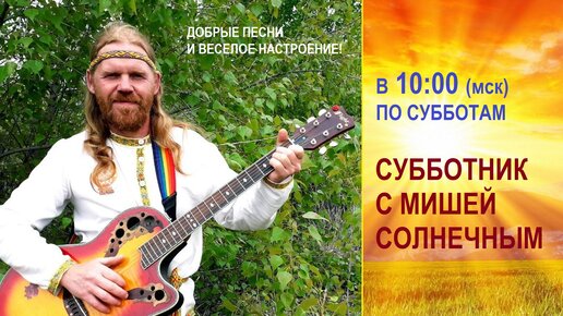 СУББОТНИК С МИШЕЙ СОЛНЕЧНЫМ. Субботняя передача в 10:00 от ШВЕЙНОГО КАФЕ с Солнечным бардом Михаилом Сафроновым. Зарядитесь позитивом с нами