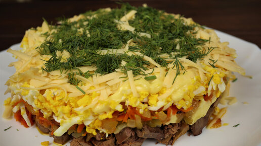 Слоеный салат с печенью и майонезом, просто и очень вкусно