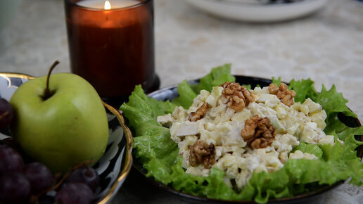 Салат из курицы и ананаса с грецким орехом!