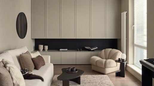 Лаконичный интерьер квартиры на 69м² для врача-косметолога в пастельных тонах.