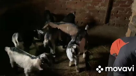 Макс заботливо балуется с козлятами.