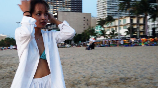 Потрясающая вечерняя прогулка по пляжу города Паттайя