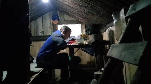 9с. Жизнь в лесу и стройка ИЗБЫ! Привёл помощника. Суп на костре. Непогода. Лодка снова дома.