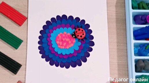Божья коровка на цветочке. Пластилинография. Мастер класс по лепке для детей