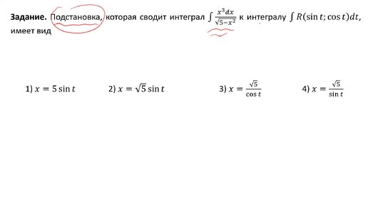 Применение тригонометрической подстановки к интегралу с иррациональностью (A6)