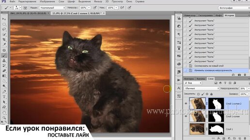 Как вырезать кошку из фото и перенести ее на новый фон в фотошопе