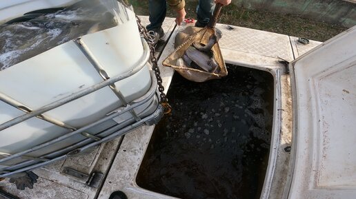 Догружаем остатки форели в рыбовозку