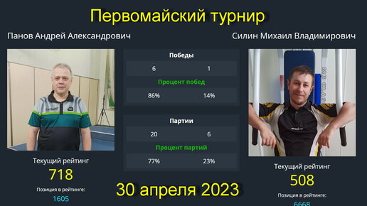 Встреча Панов А.(718)- Силин М.(508). Турнир "Первомайский" 30 апреля 2023