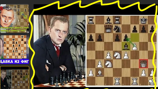 Александр Алехин остался с черным ферзем против ладьи Фридриха Земиша + у обоих пешки. Конечно, маэстро взял победу (Берлин, 1921, 0-1)