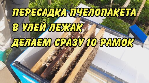 пчеловодство, пересадка пчелопакета в улей лежак делаем сразу 10 рамок