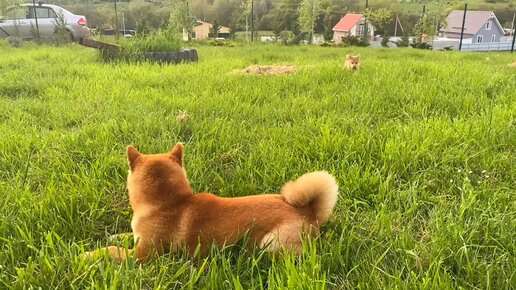 Отец Сиба ину впервые играет с сыном, мать внимательно следит