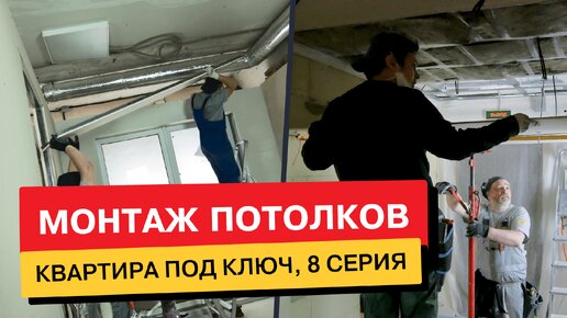 Монтаж потолков в комнате, коридоре и ванной — 8 серия «Квартира под ключ»