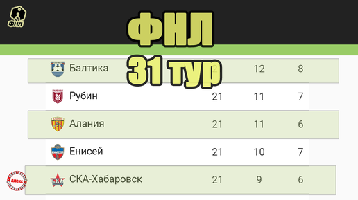 Футбол России. ФНЛ. 31 тур. Результаты. Таблица. Расписание.