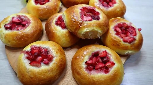 ПЫШНЫЕ как ПУХ МЯГКИЕ БУЛОЧКИ с НАЧИНКОЙ из КЛУБНИКИ
