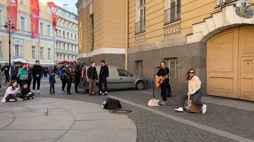 Девушки вживую спели и сыграли популярную композицию в центре Петербурга